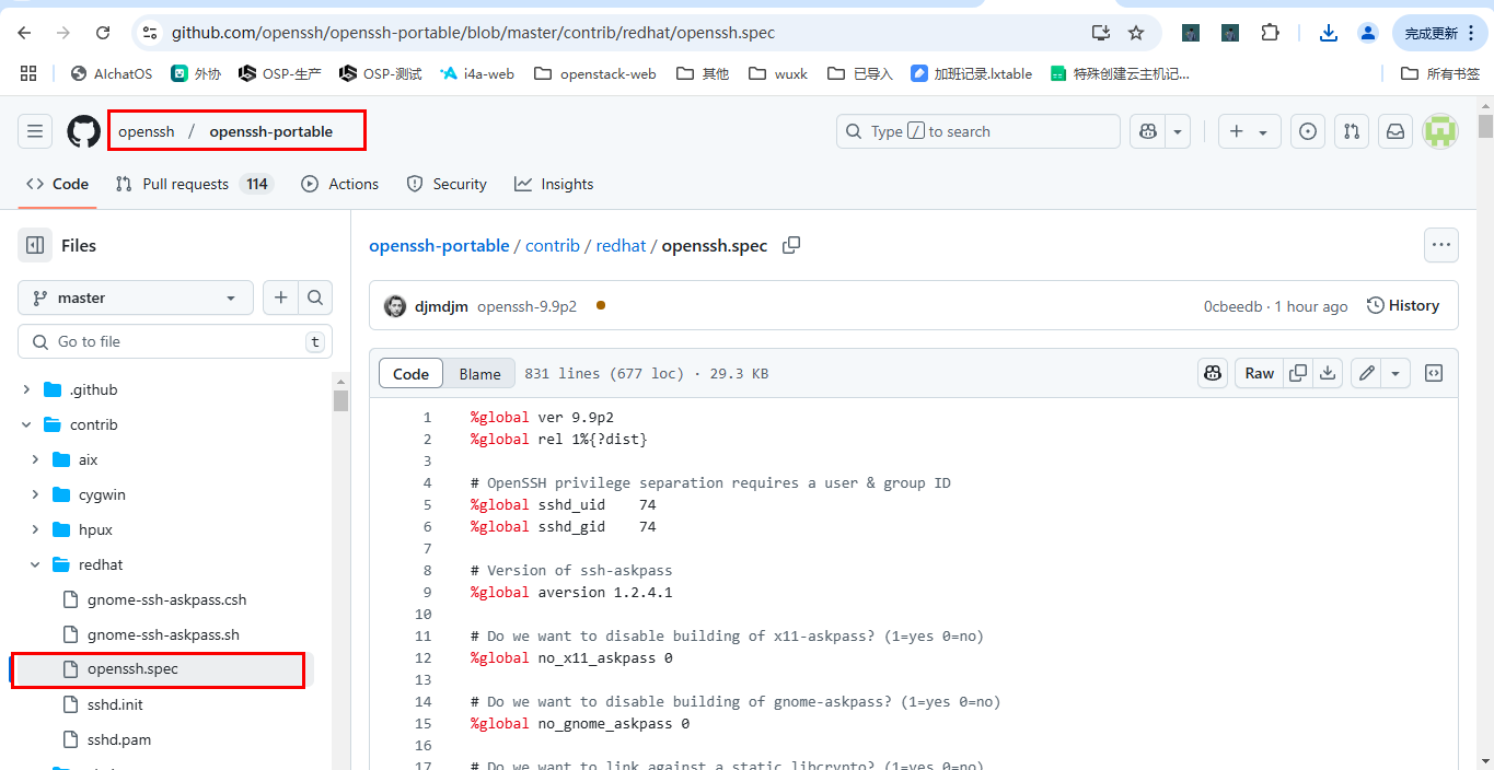 total 112K -rw-r--r-- 1 root root 111K Jul 13 2021 openssh.spec修改spec