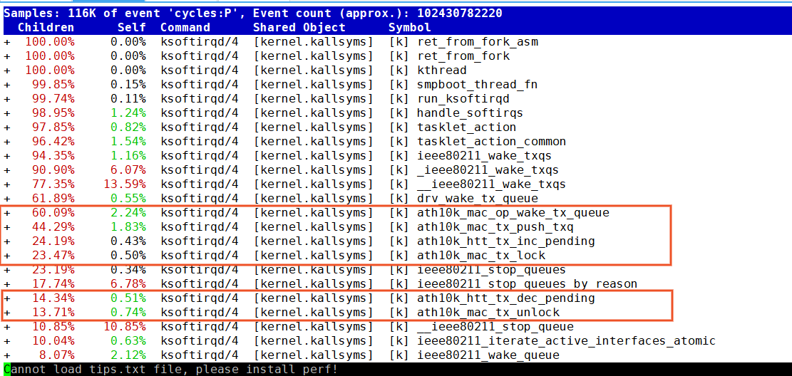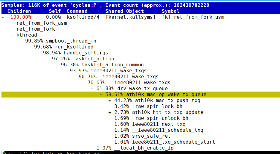 发现 ksoftirqd 通过 tasklet_action 处理无线网卡 ath10k 的软中断任务时,导致 CPU 占用率飙升